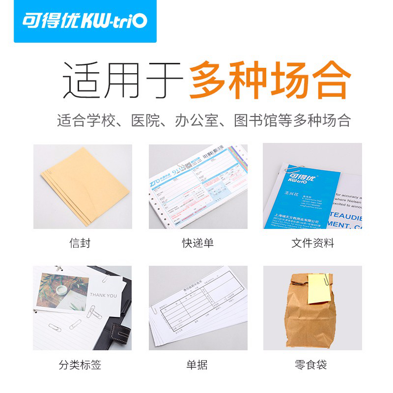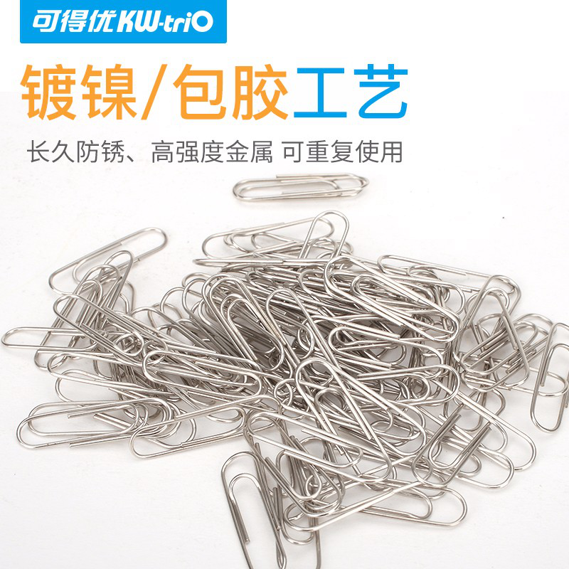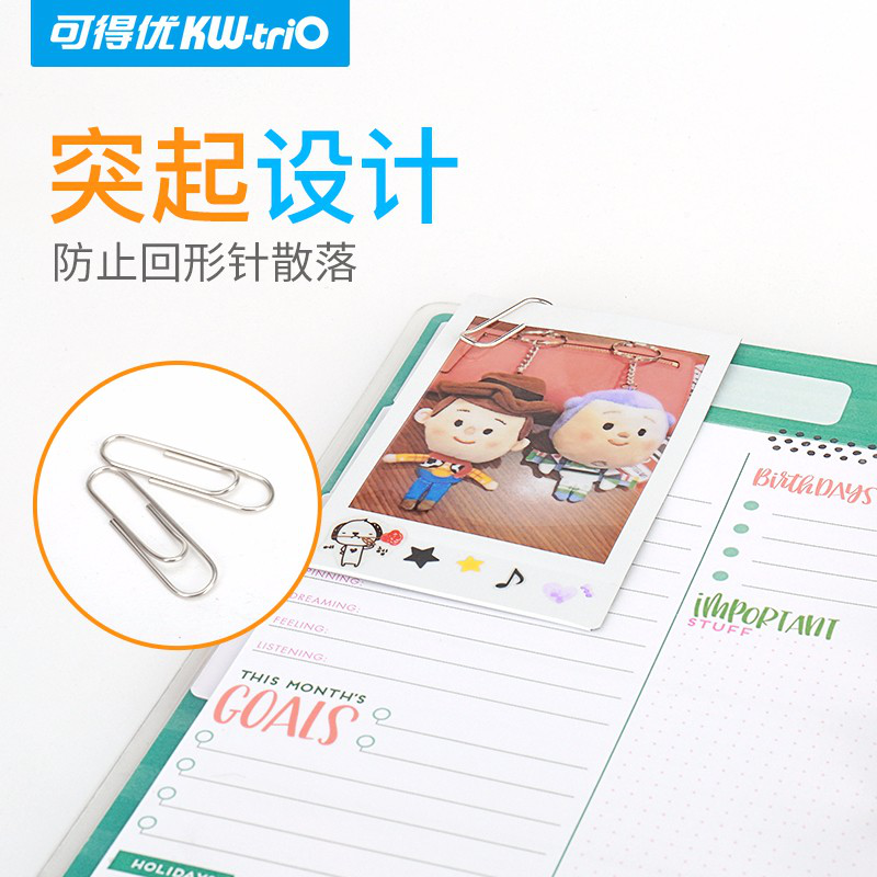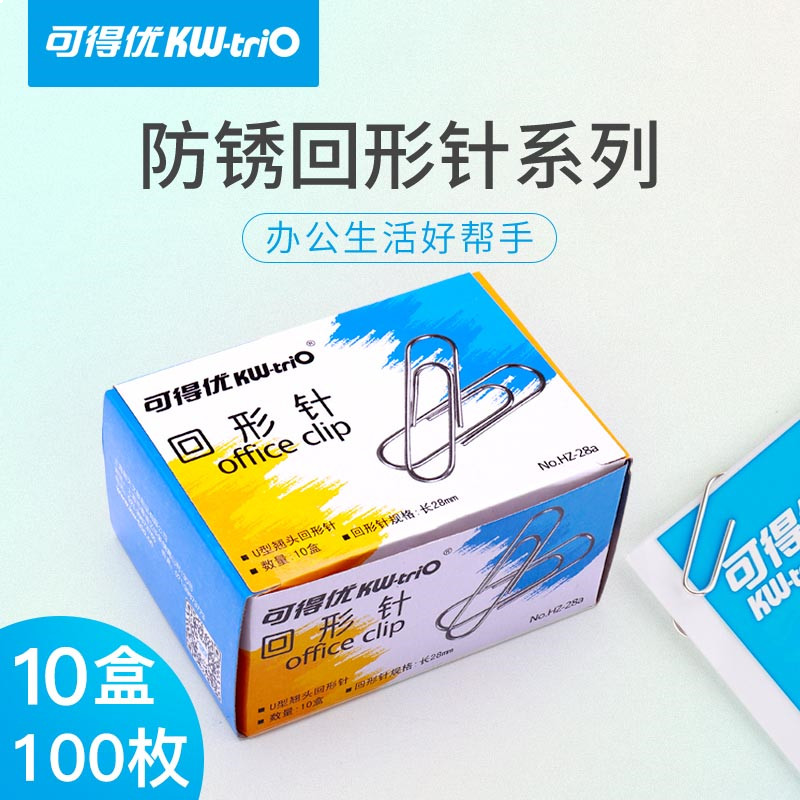 • 可得优(KW-triO)彩色回形针防锈U形针文件曲别针大头针便签卡针环形针包胶不宜10盒共1000枚