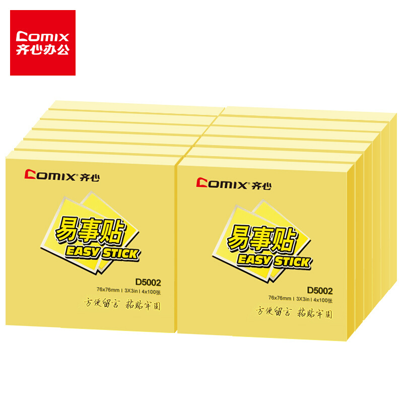 齐心(COMIX) 12本装便利贴/便签纸/便签本/易事贴(76x76mm)办公文具D5002黄