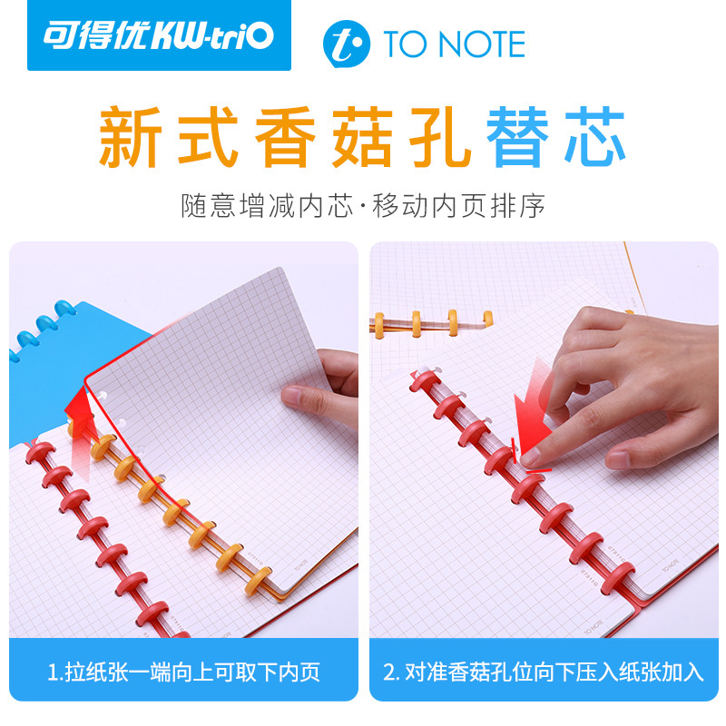 • 可得优(KW-triO)香菇孔本子A7B5可替换芯笔记本子横线方格建筑绘图本加厚活页本手账本日记内芯A5方格默认6