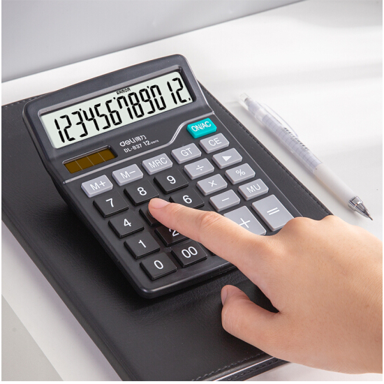 • 得力(deli)双电源轻便桌面计算器 12位大屏桌面计算机 办公用品 黑色837